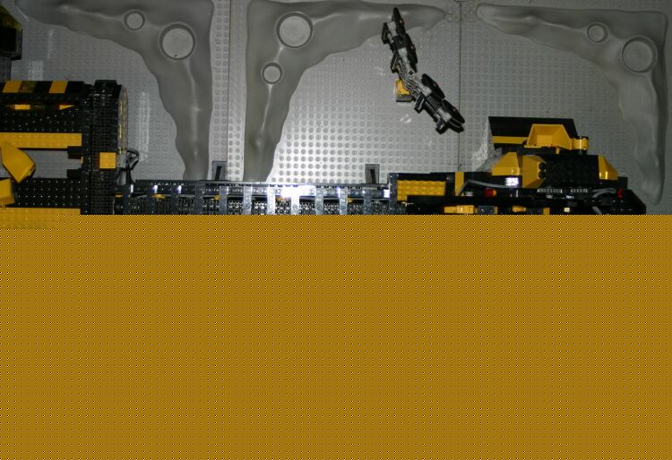 And here we have the mine head - a sophisticated automated system to remove high grade ore from within this moon using automated processes. Note in the top of the picture is a multi-array radar system which was probably used to track space traffic in the area and warn of intruders. This system surely saw our high speed satellite and probe coming, but defenses were lax enough that we got our pictures. The standard defense of this Blacktron base was camouflage.
