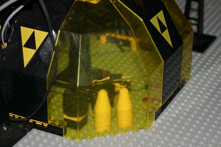 Moving on counterclockwise we see a close-up of the service area off the back of the Battrax service bay. Some equipment and supplies and a service robot are visible behind.