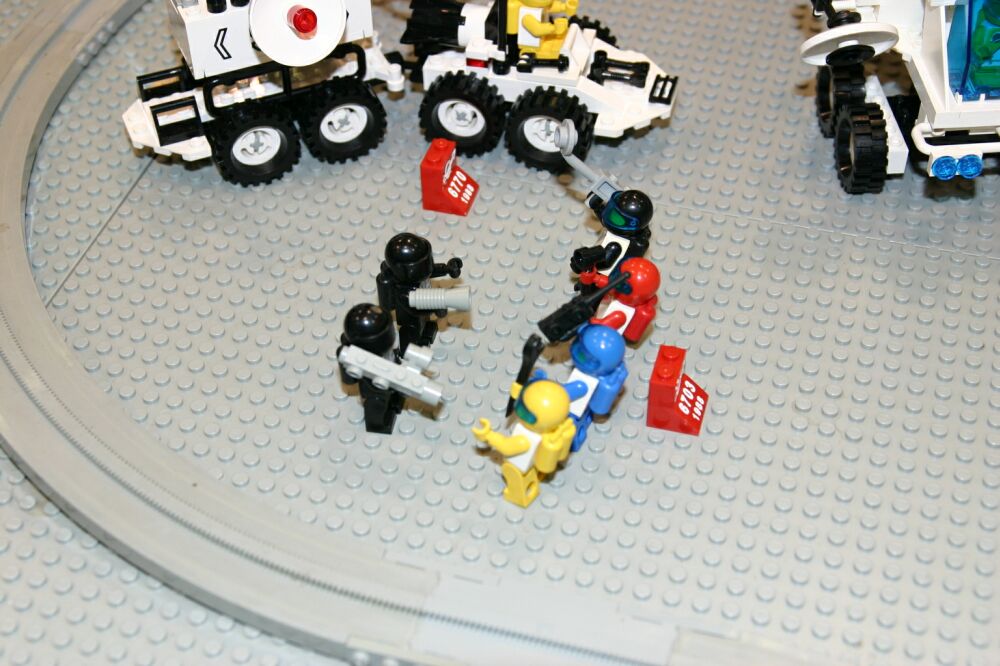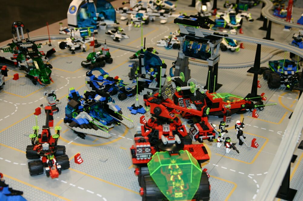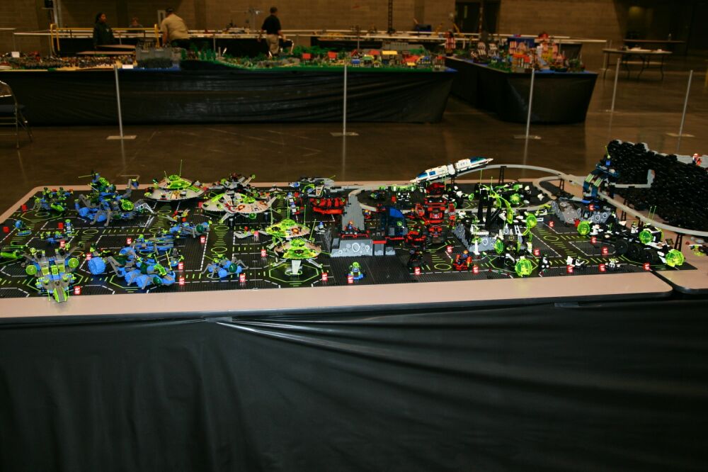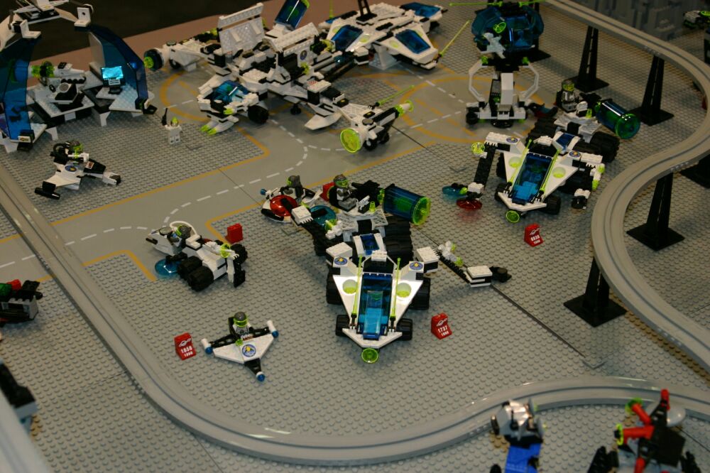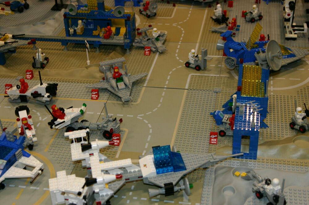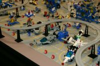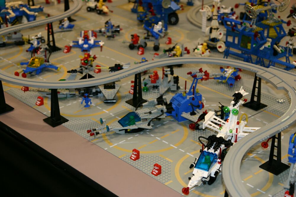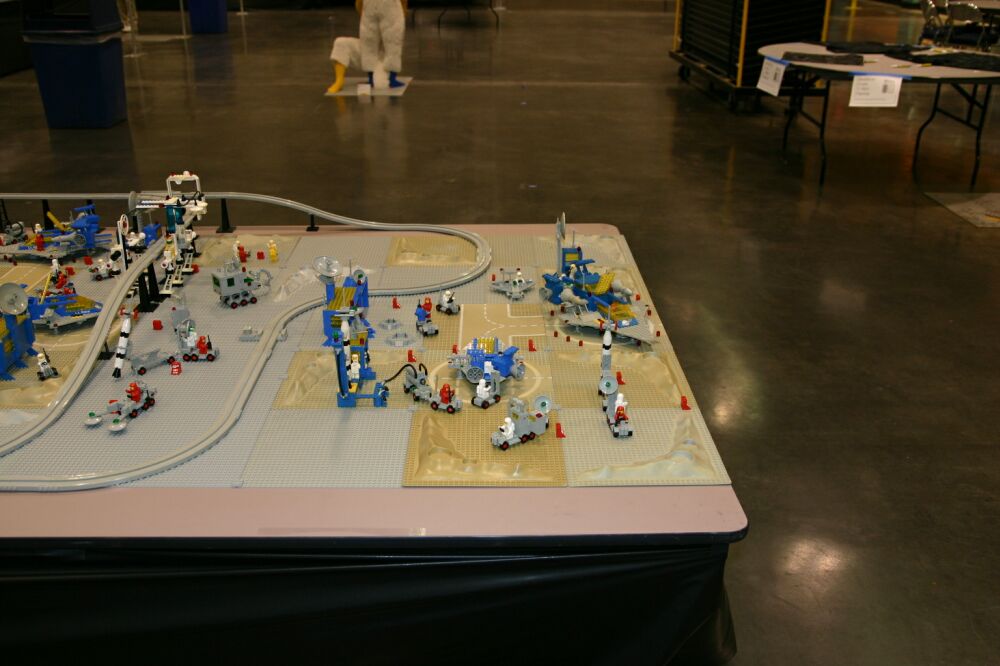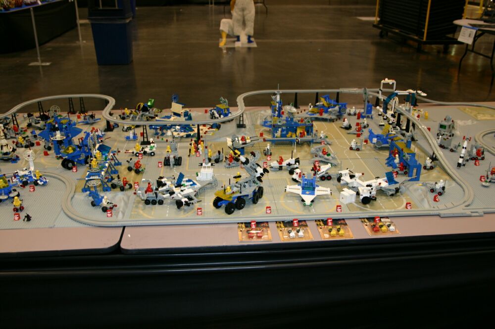 A great big THANK YOU to those who brought sets, helped with the setup (which took until about 1:00 on Saturday the 31st), answered questions for the public and helped to take it down again. So here it is - space complete, with the exception only of a few greebles lost in transit. Enjoy!