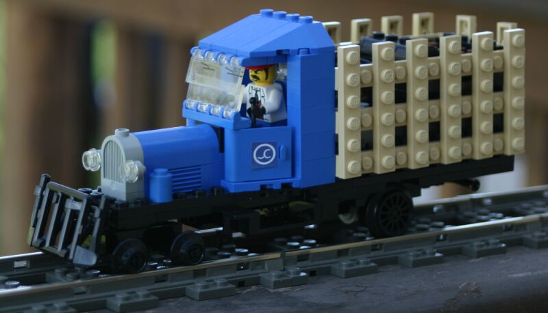 Old style 1x1 round bricks (without edges on the base) are used for round bits on the prototype truck this is based on. My truck has the "Circle JC" logo, for Horseshoe Bend Rail Road, same as my Christmas Train. Note the exhaust pipe.